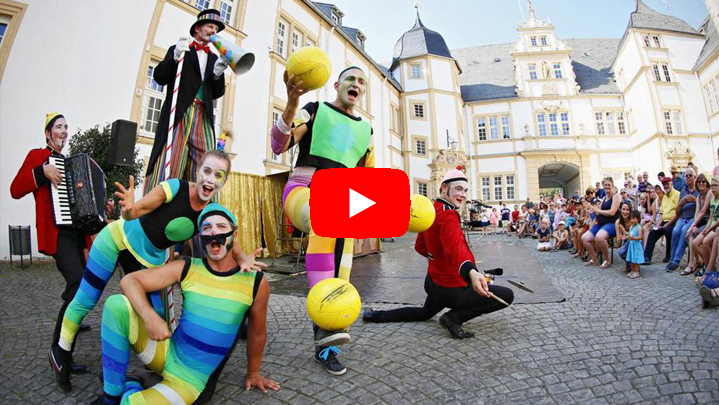 Waar mogelijk mag het publiek meespelen in hun optredens. Wie doet er mee? Pak die kegels of klim op een acrobaat.